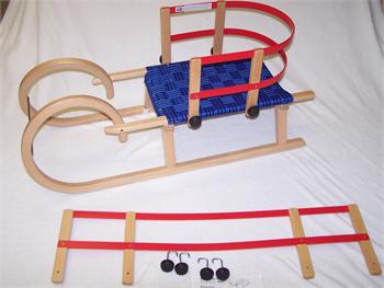 Rodel Horner Wooden Snow Sled. Deigned and built in Europe not a Chinese knockoff! This sled is straight from the Alps. True quality, built to last for generations with stainless steel runners, beautiful ash steam curled horns and a comfy canvas web seat. This classic design from Germany creates envy on the hill.